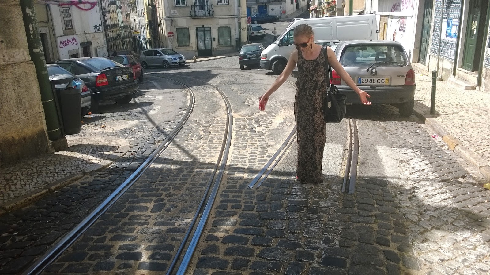Annika oli ihmeissään ratikkakiskoista, jotka alkoi keskeltä katua ja alempana päättyi keskelle katua. Joku on varmaan aluksi suunnitellut ratikkareitin parkkipaikkojen läpi ja sitten todennut, että äh, tehdään sittenkin toinen tuohon viereen.
